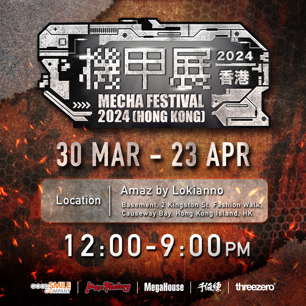 機甲玩具迷注意!機甲展2024(香港)即將登陸香港!由香港玩具品牌threezero主辦,聯同日本頂尖機甲玩具品牌Good Smile Company、MegaHouse及千值練,將於3月30日至4月23日進駐銅鑼灣玩具展覽店Amaz By Lokianno,展出最新最人氣的機甲模型首辦,同時推出一系列限定玩具商品,更邀請到日本玩具大師 — 設計師河森正治及模型師Naoki駕臨,出席分享及簽名會,與一眾機甲玩具迷近距離見面交流!