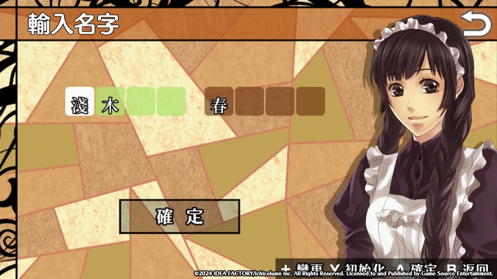 首先是設置女主角的姓名。姓氏和名字分別可以設置4個字。默認為「淺木 春」。