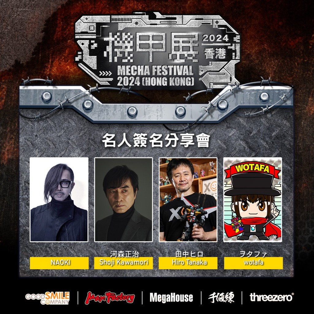 展覽邀請到日本專業模型師及多元創作者Naoki、日本知名動畫監督及機械設計師河森正治、日本玩具評測創作者Wotafa、及機器模型人製作人田中ヒロ,分別於3月31日及4月1日出席分享及簽名會。
