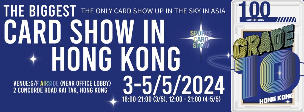 在收藏市場中,「Grade 10」是鑑定中最高的評分標準,以此命名、全港首個最大型、最具規模卡牌及珍藏品展的「GRADE 10亞洲巡迴卡展」 首站香港,將於5月3日至5日登陸香港啟德AIRSIDE 29樓。作為亞洲唯一”在高空中舉辦”的卡展,「Grade 10」一連三日邀請了業內首屈一指的代表、過百參展商及收藏家在翱翔空間分享珍貴藏品,並於卡展期間舉行運動卡團拆(Group Break)活動、藏卡拍賣會、運動珍藏品展示及來自世界各地的收藏家分享會,交流藏卡的心得。除此之外當然少不得各類遊戲卡比賽,勝出者更會獲得東京來回機票!請即登記入場(Grade10登記連結),參加及感受這股卡牌潮玩新風潮。