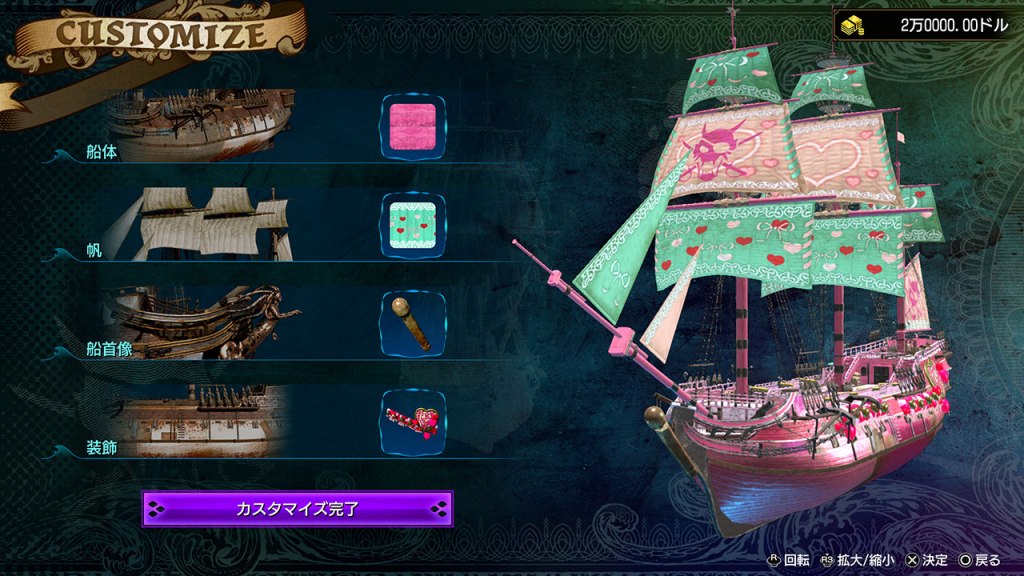 首先是主角真島的海盜船「吾朗丸」,遊戲除了可以為船隻改造成自己喜歡的外觀,還可以提升船隻的性能。說到這個當然不少得《人中之龍》系列的收集物品,而且不論在陸地上推進故事或在海上航行都可以收集物品及購買物資來強化船隻。