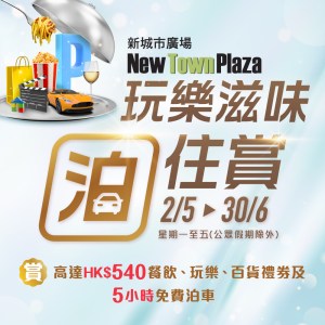 同場加推:「玩樂滋味泊住賞」送你高達HK$540餐飲百貨超市禮券及5小時免費泊車