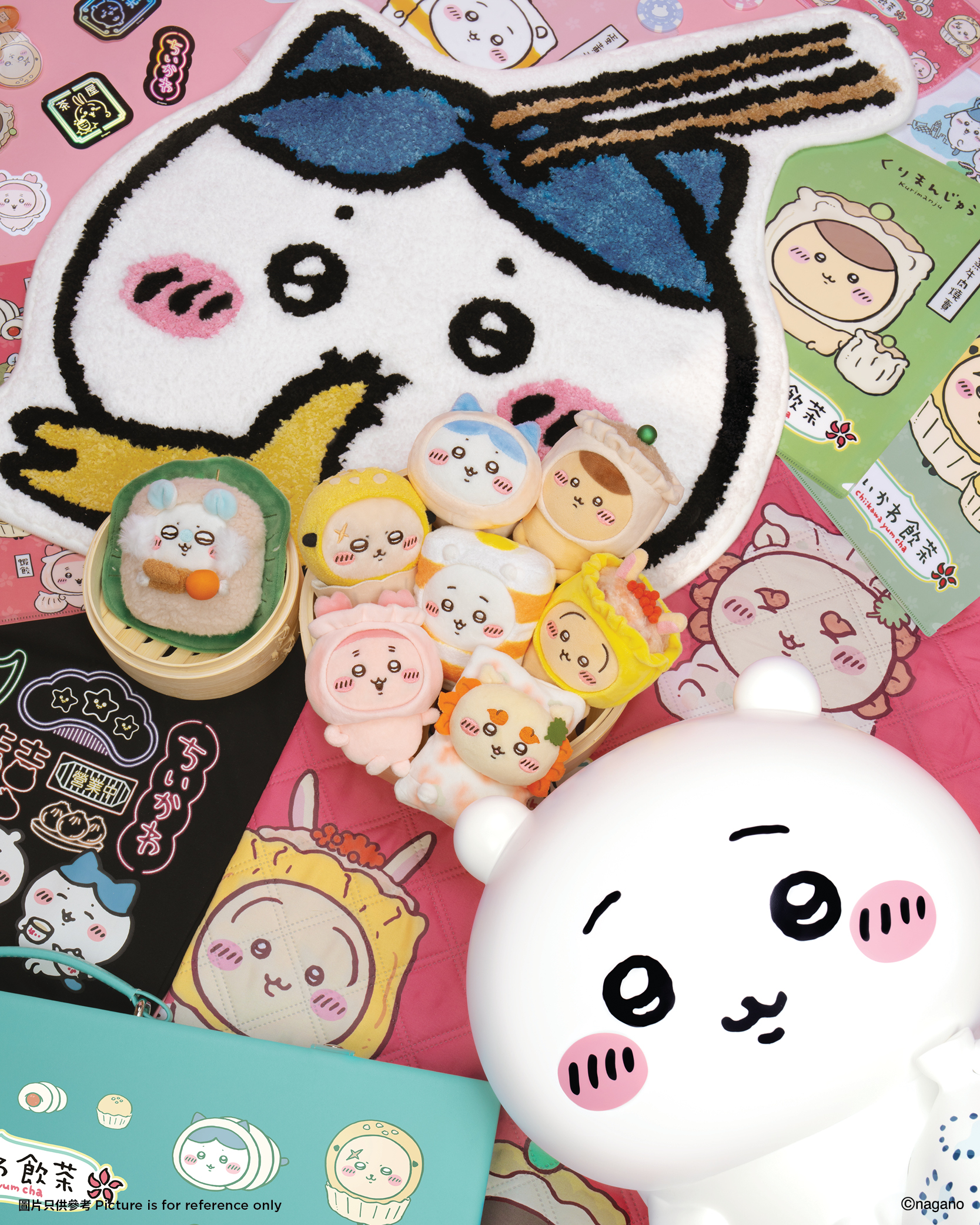 為慶祝「CHIIKAWA DAYS」大型特展登場,主辦單位將推岀一系列主題紀念品,8月1日起於展覽會場全球獨家首賣,數量有限,先到先得。獨家紀念品包括由吉伊卡哇插畫家Nagano,特別為香港展覽親筆創作的香港「飲茶」指定系列,融合最具代表性的飲茶文化,將吉伊卡哇與好友化身成美味與可愛兼備的點心造型。